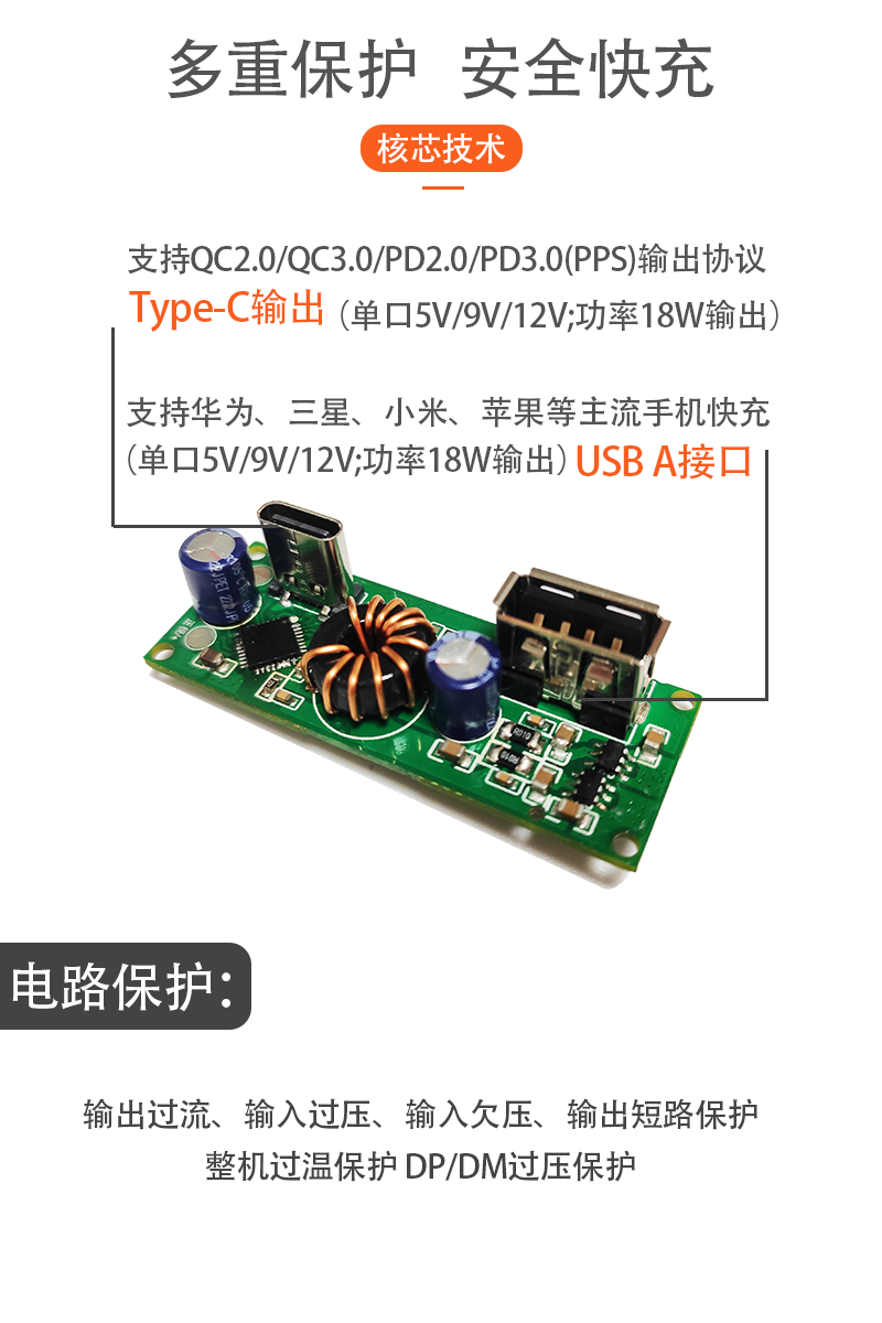65W 多协议快充有线充模块
